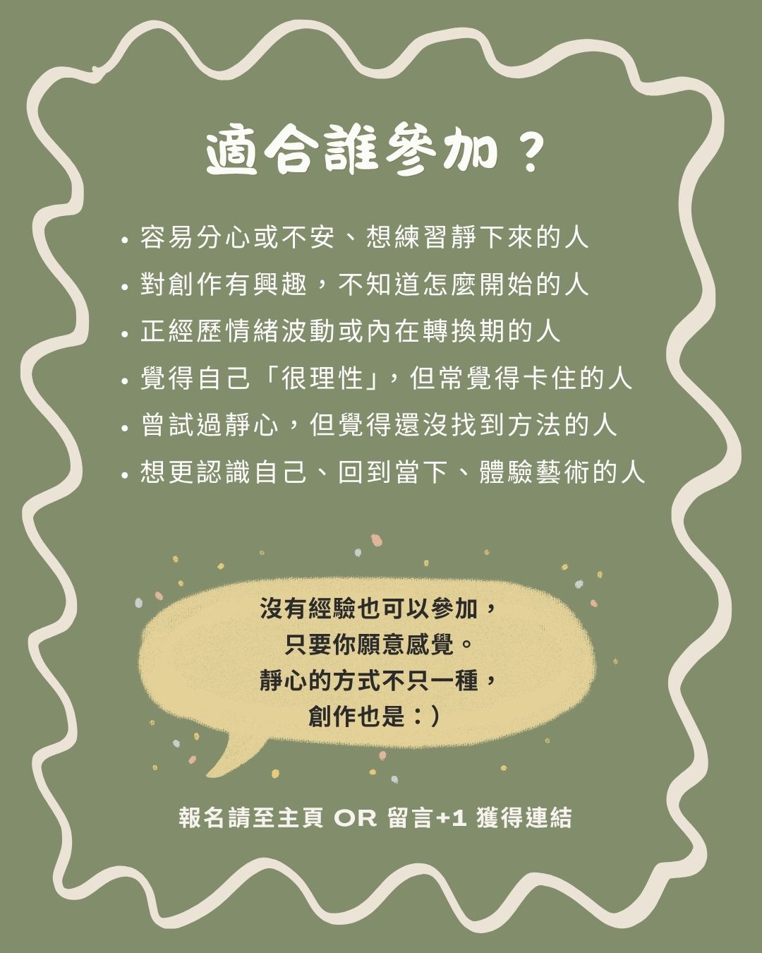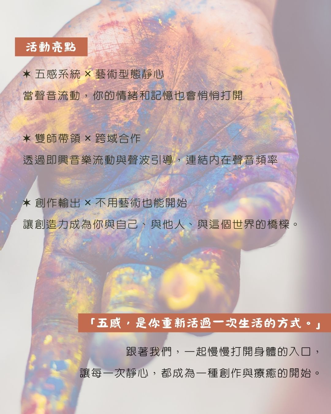 每堂 3 小時靜心 × 感官體驗 × 藝術創作引導