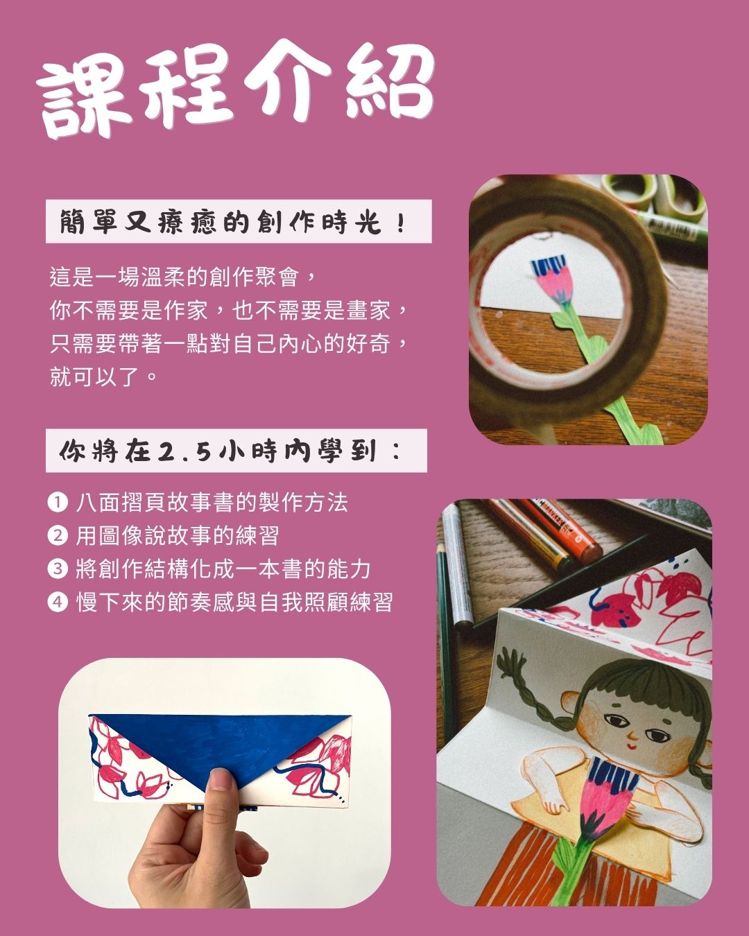 * 以上費用已含手作材料費、茶點、現場媒材自由使用、小書完成作品一冊