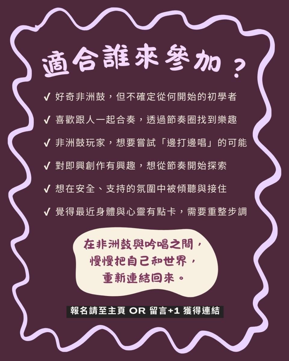❍ A場|非洲鼓圈吟唱工作坊 (90分鐘)