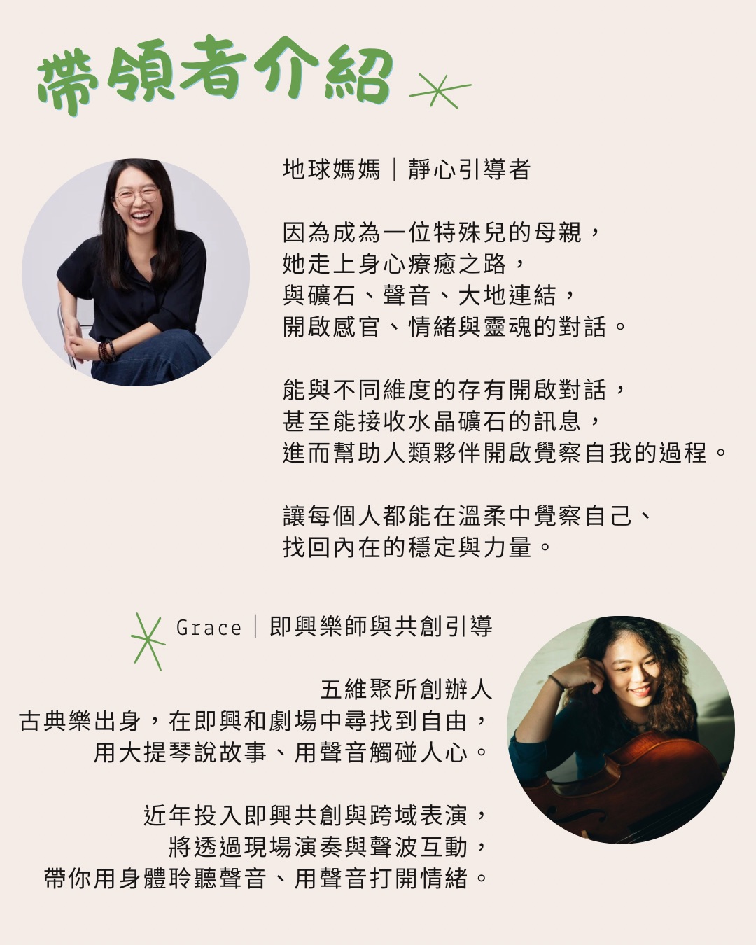 透過聲音 × 身體 × 創作,引導你回到真實的感受。