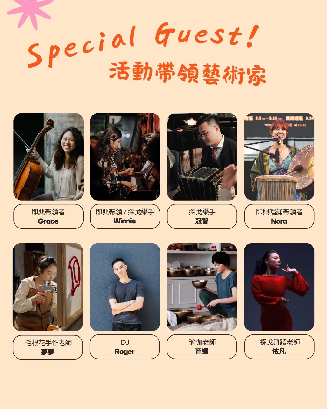 由Winnie & Grace 帶來一場聲音的即興共演,現場也將帶領觀眾參與,一起投入即興創作!
