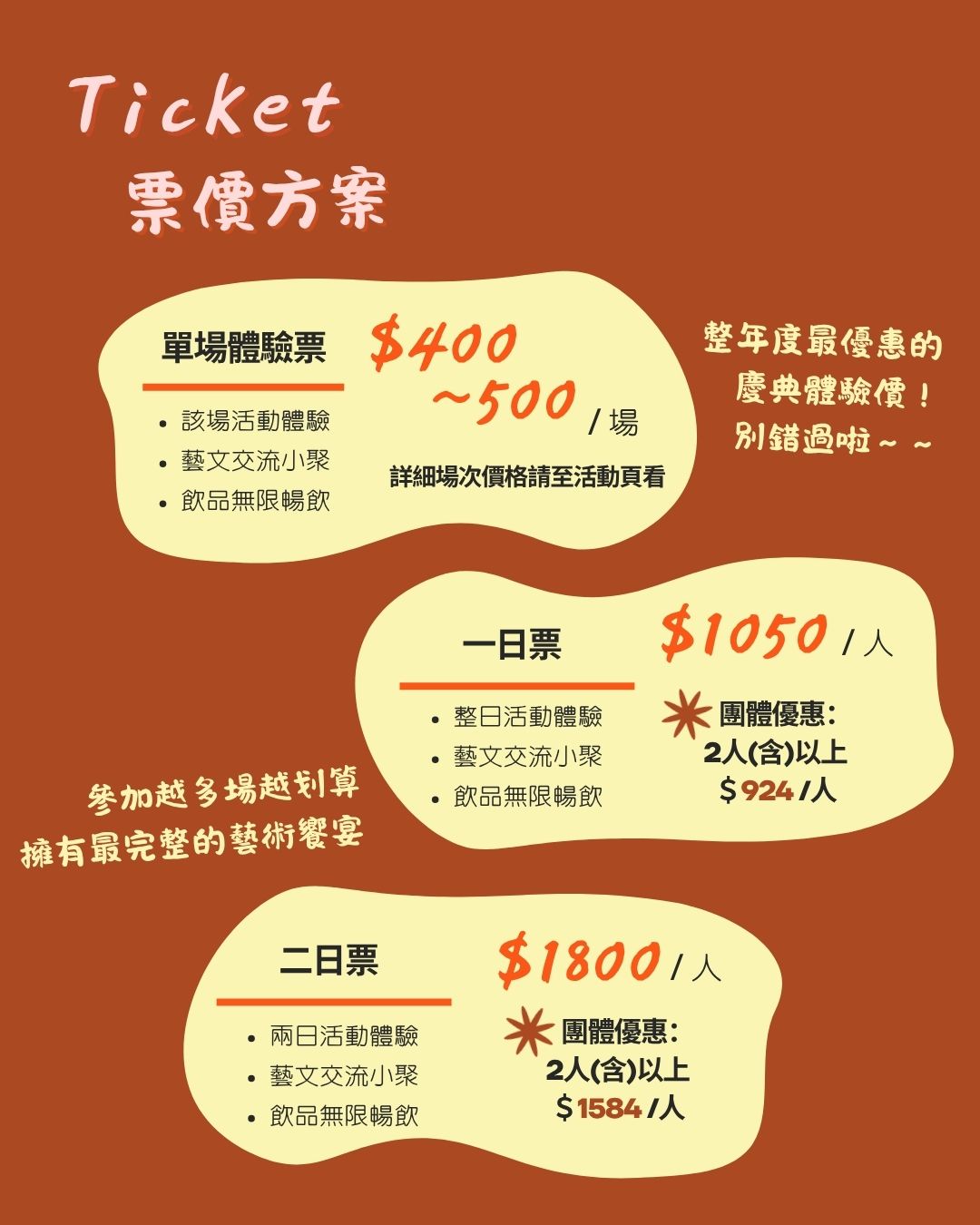 ✓ 每張門票皆包含空間享用